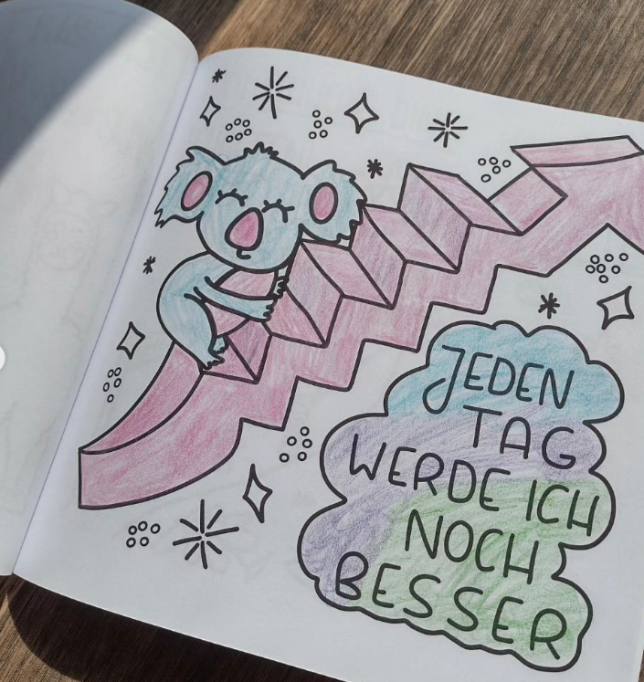 Meinung: Ein sehr besonderes und außergewöhnliches Malbuch für Kinder und natürlich auch etwas größere Menschen😉 Meine Schwestern und ich haben viel Spaß beim Ausmalen der Seiten und Vorlesen der Sprüche auf den einzelnen Seiten.☺️ Außerdem kann man beim Malen perfekt entspannend.🧘♀️ Die Motive, die eigentlich immer Tiere sind, sind mega süß und man möchte sie gerne fröhlich bunt machen! 😚Das Malbuch schenkt also auf jeden Fall ganz viel Stärke und ist genau das richtige für alle Malbuch-Fans!😄 Wir geben dem Buch 5/5🍯